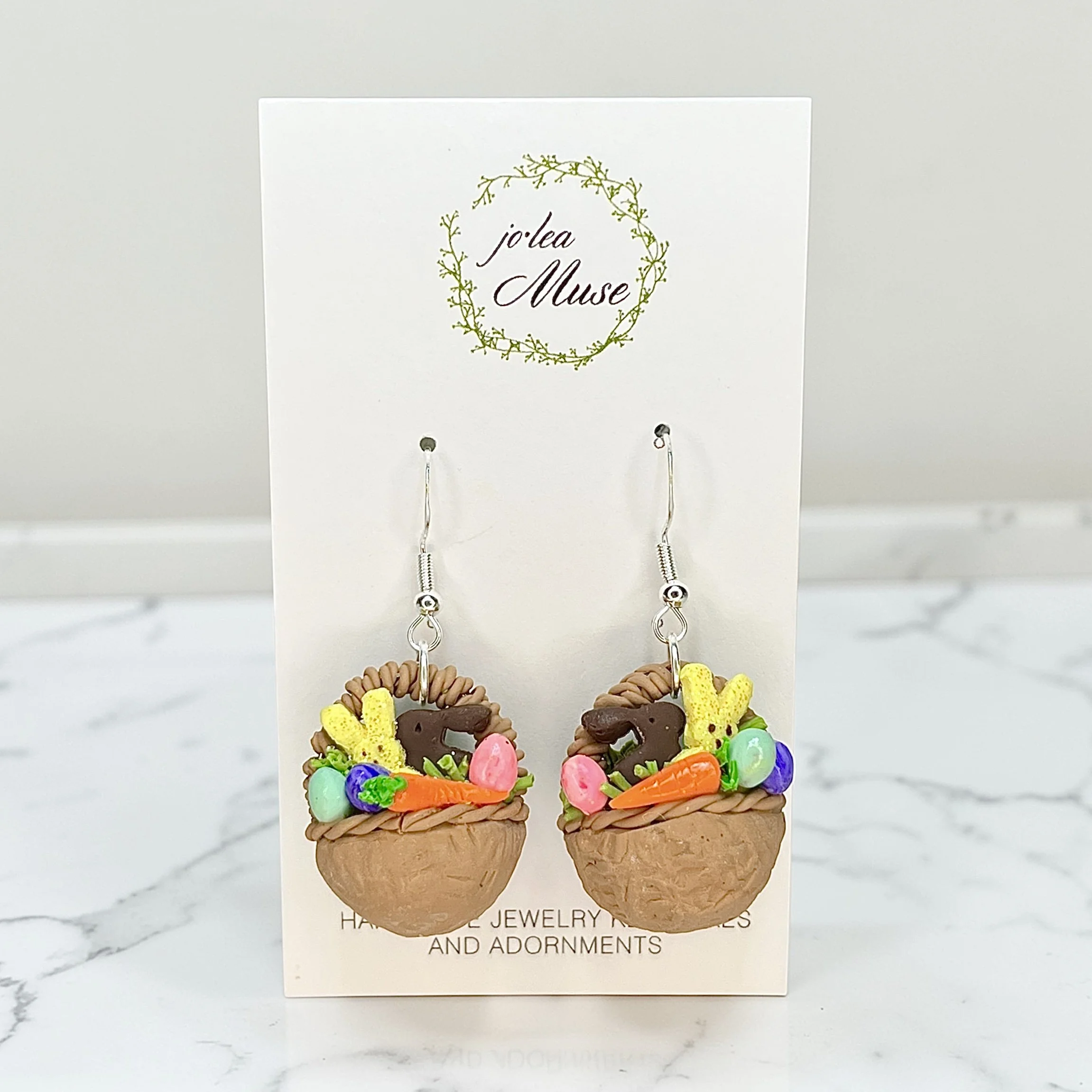 Shop › Easter Basket Earrings Image 1 of 1 Easter Basket Earrings $45.00 Hand Sculpted Polymer Clay Earrings Add To Cart Added! Hand Sculpted Polymer Clay Earrings